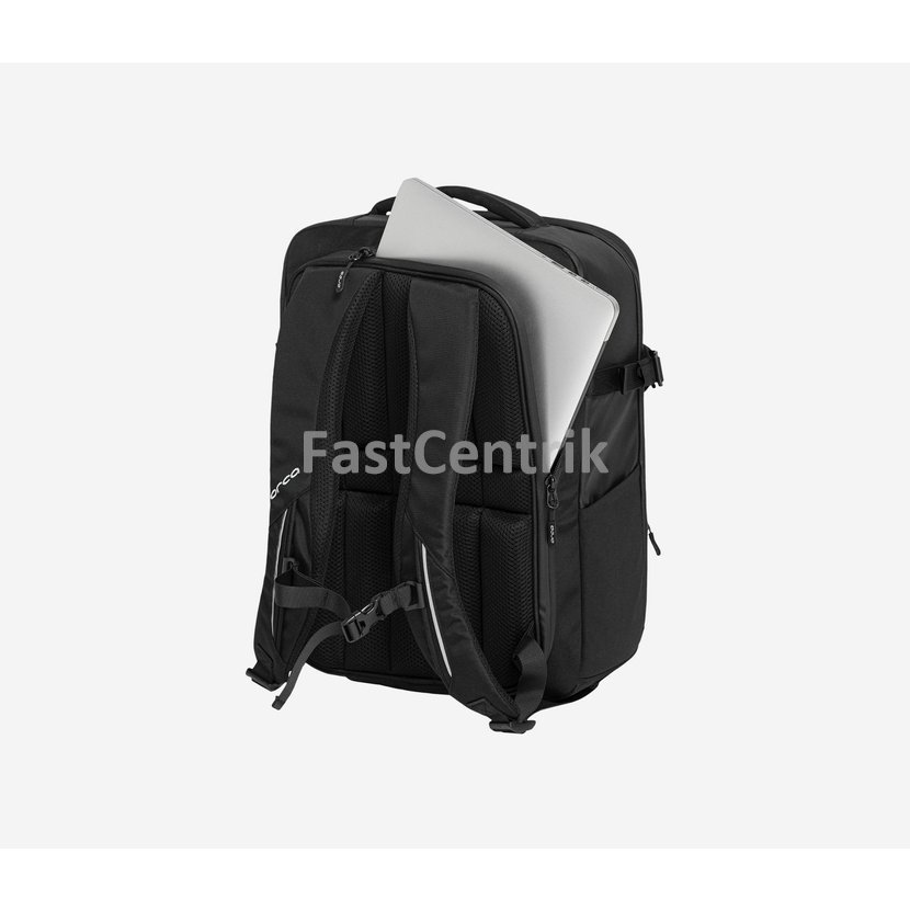 Velmi promyšlený batoh se stavitelnými popruhy a anatomicky polstrovaným zadním dílem je doplněn nepromokavými externími obaly na drobnosti nebo mokré věci, spoustou vnitřních zazipovaných kapes (včetně polstrované kapsy na notebook) a vnějšími kapsami na láhve.